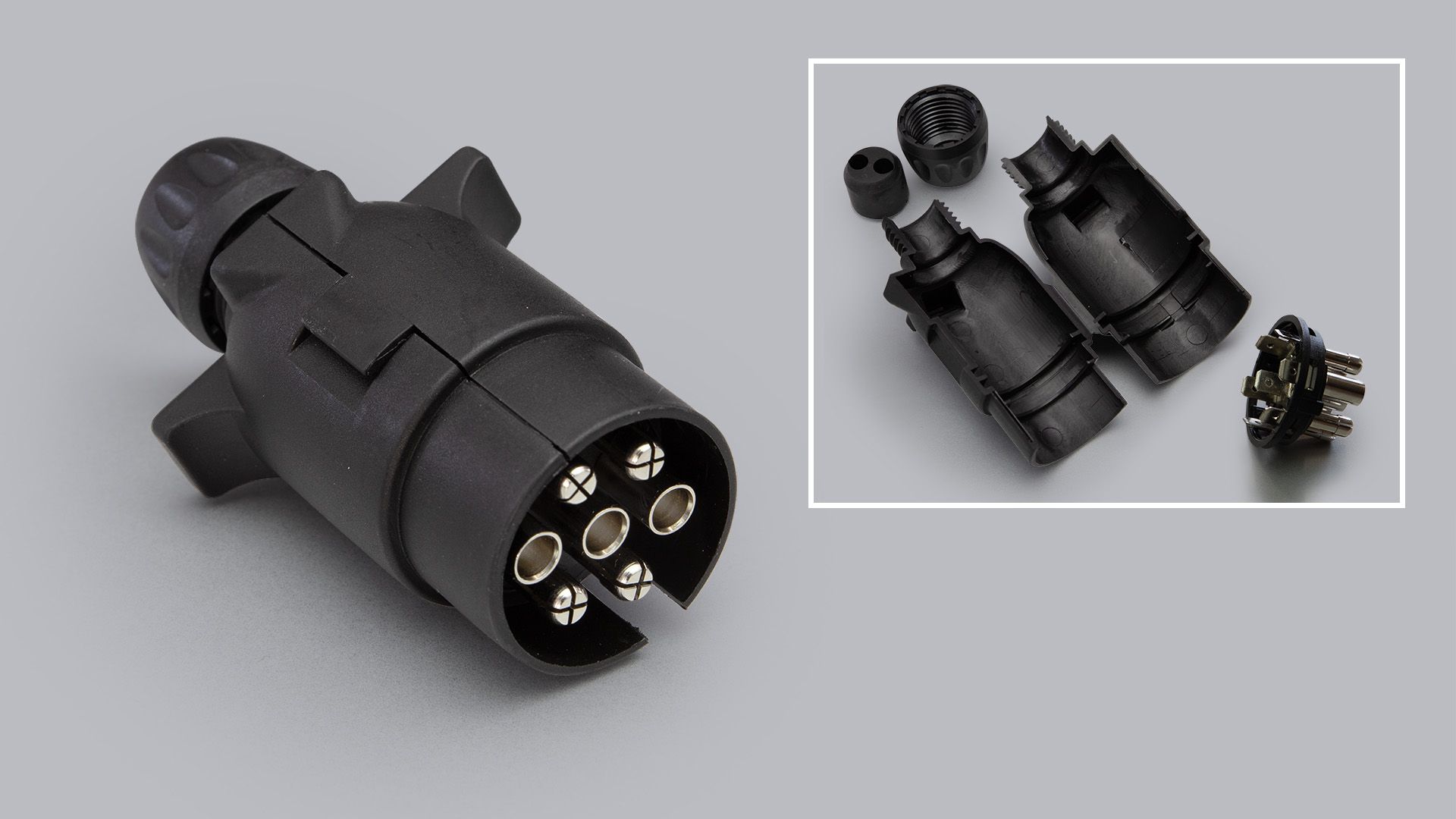 | 13603 | Kištukas, 7 gnybtų | Su plastikiniu korpusu, plokščiu kištuku jungiami laidai. |